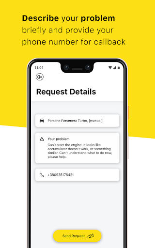 Intuitive design. Request help just in 3 steps: location, car, message.