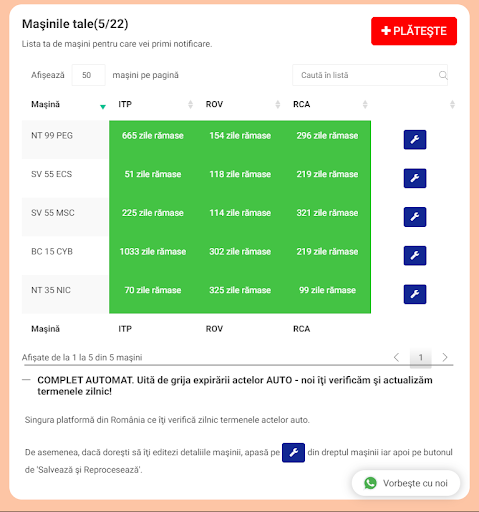 Pentru ROVINIETĂ, notificările se fac cu 5 zile înainte, 2 zile înainte şi ziua expirării.