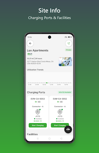 – Details Site Info Screen: You can now view detailed information about charging stations, including location, Availability, Amenities, Pricing, Opening times and more.