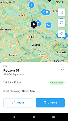EV+MAP will make your EV life easier. You can find charging stations and see if the specific port you need is available. You create your own account to easily start and pay for the charging.