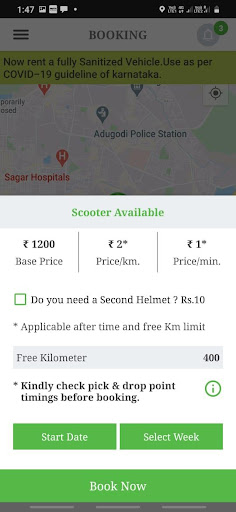 Our scooter rent starts from Rs. 2 per km and the final bill consist of various parameters, for more details check into the app about the billing.