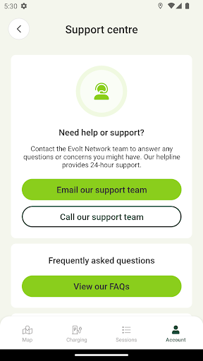 > Payment and Billing: Navigate the financial aspects of electric vehicle charging with the Evolt Network App. You can view your history of your charging sessions and view your invoices.