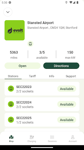 > Navigating to Charging Stations: Efficiency is key, and the Evolt Network App ensures you reach your destination with minimal hassle. Search via street name, location or post code and this will take you to charge points within this area.