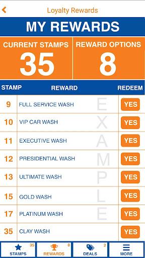 • LOYALTY REWARDS PROGRAM. Executive Car Wash Loyalty Rewards Members simply open their loyalty account on our app and start earning stamps each time they make a purchase at our car wash. These stamps are then redeemable for rewards.