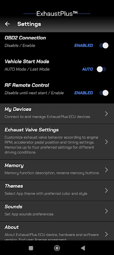 ExhaustPlus App is used to setup, configure and fine tune every single working parameter of ExhaustPlus ECU and take full control of exhaust valve behavior.