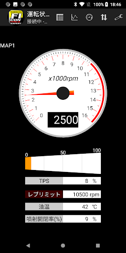 This application can be downloaded for free. When it is free, you can connect with all FI – CON TYPE – X, but only the tachometer screen is displayed. (Only tachometer and TPS are displayed).