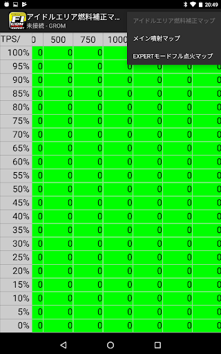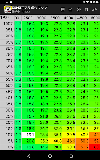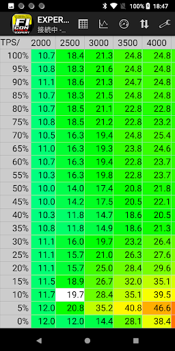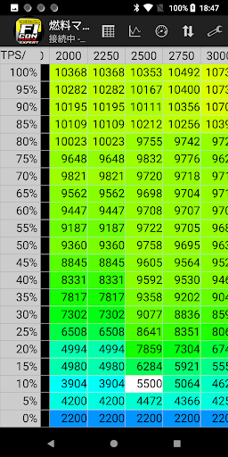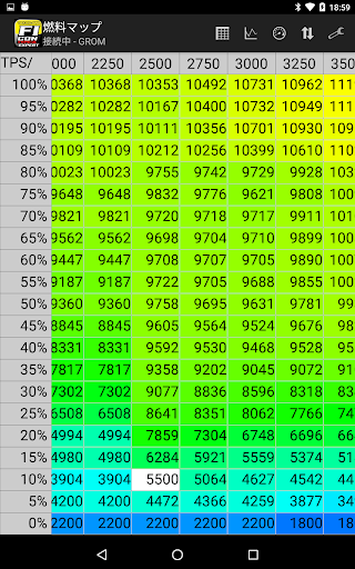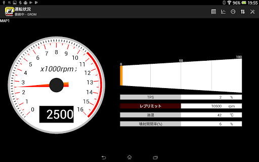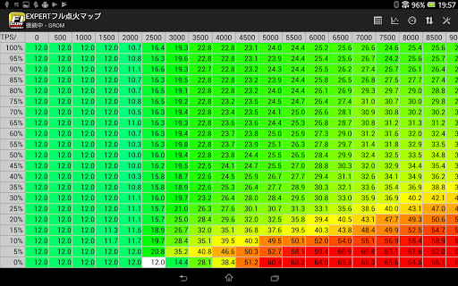 – Display the current engine speed and throttle position in real time in the fuel map.
