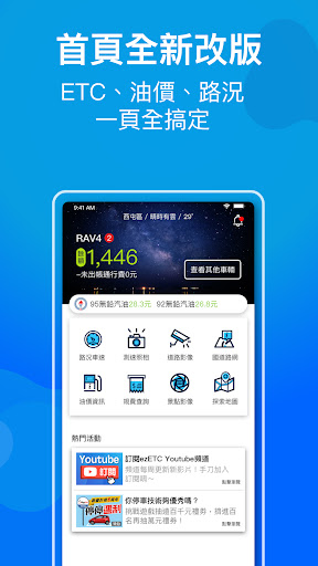 ezETC方便您掌握高速公路電子收費資訊(ETC),並提供國道即時路況、油價資訊等服務。您的行車大小事,一個ezETC APP就足夠~
