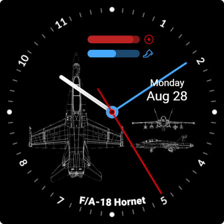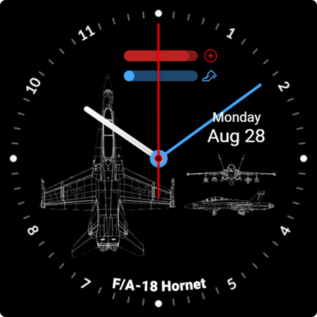 Unveil the charm of aviation elegance with the F/A-18 Hornet Time Watch Face for Wear OS 3. Embrace the art of simplicity and style on your wrist. Download now and enjoy a masterpiece that brings the F/A-18 Hornet’s essence to your daily routine.