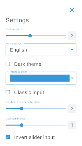 FCC has two modes of inputting data – standard keyboard or swiping the numbers, which makes the app more accessible for everyone. Additionally, the app offers a variety of color themes and a dark mode for a comfortable user experience.