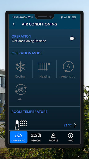 • Heating and air conditioning: Control and manage the temperature in the vehicle on your mobile device.