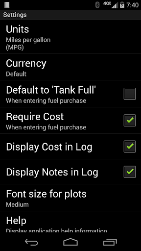 Selectable data entry mode – when adding fuel data, choose which values to enter: