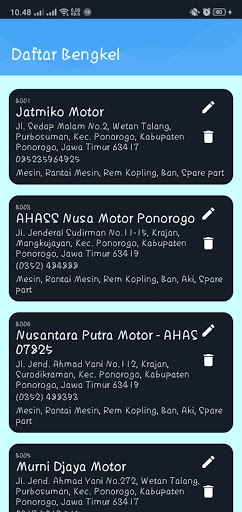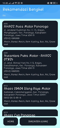 Aplikasi ini adalah aplikasi pencarian bengkel motor di kecamatan Ponorogo, Jawa Timur sesuai dengan kategori kerusakan dengan menggunakan perhitungan Naive Bayes Classifier.