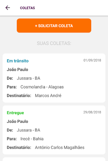 Pelo aplicativo você pode solicitar coletas, acompanhar o andamento, ter seu histórico de entregas e acessar os comprovantes. Também é possível fazer orçamentos/cotações diretamente com os motoristas franqueados.