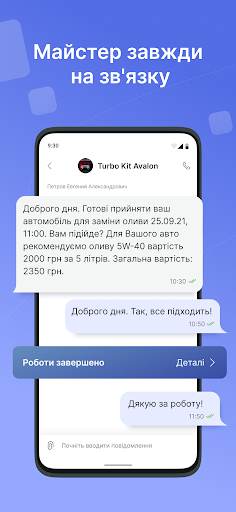 With FixIQ, you don’t need to go to a garage or call a mechanic to arrange additional work and parts. Just open the application and contact the master in a personal chat.
