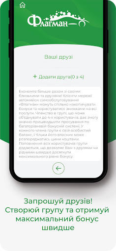 3) Користуйтесь програмою лояльності разом з друзями. Використавши функцію додати друга, запросіть своїх близьких та створіть групу з ними. Досягайте та користуйтесь максимальним гривневим бонусом спільно.