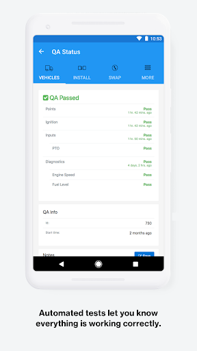 The Fleet Hardware Installer app guides third-party technicians through the installation process of our vehicle tracking devices to ensure they are installed correctly and quality checked. Quickly evaluate and adjust the configuration and installation status of your entire fleet and get a quality assurance check using your device.