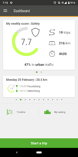 fleet.tech DRIVER uses the sensors on your smartphone to analyze your trips and calculate driving indicators. You can follow the progress of these indicators, view reports and details of each of your trips. The app measures your progress and provides you with valuable hints for improvement. Optionally it compares you to a community of drivers.