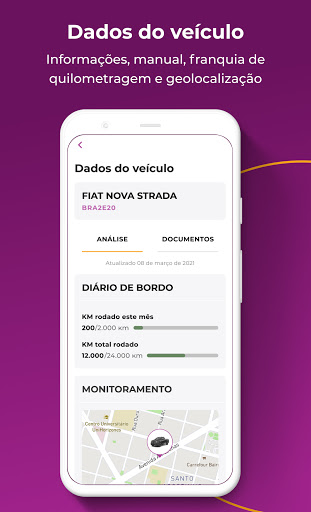 • Acompanhe a quilometragem rodada no mês e a acumulada no contrato;