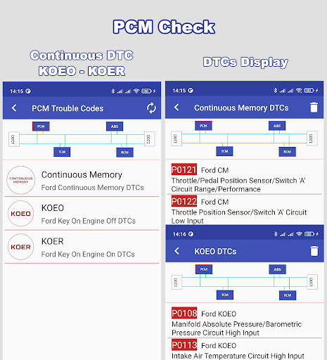 – PCM Read and Erase: Powertrain Continuous Memory , KOEO, and KOER