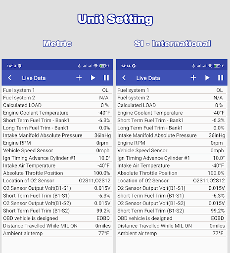 • Data Log/Live Data: full PIDs (support by your vehicle)
