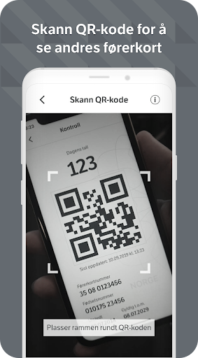 – mulighet til å skanne andres QR-kode for å se og bekrefte informasjonen på deres førerkort.