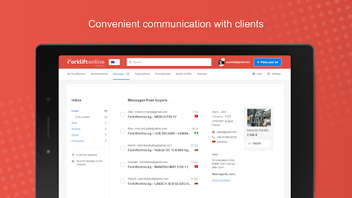 Forkliftonline is an app for forklifts and warehouse equipment for sale. We have more than 20,000 ads for all types of warehouse equipment, as well as spare parts and tires.