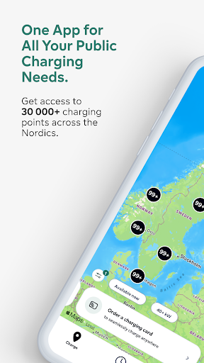Charging Across the Nordics – Access 30,000 charging points in Norway, Sweden, and Finland. Easily find available chargers nearby or along your route, with options to filter for high-speed stations over 100 kW.