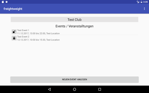 Hier werden pro Event/Veranstaltung die Gewichte erfasst und als Ergebnis zusammengefasst.