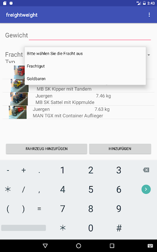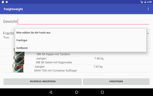 Diese APP dient zur einfachen Erfassung von Transportgewichten bei Modellfahrzeugen.