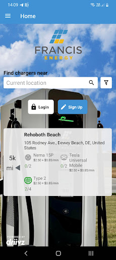 Francis Energy’s DC fast charging stations support all CCS (SAE Combo) and CHAdeMo compatible EVs. You can also use the app to find Level 2 chargers (with J1772 connectors)