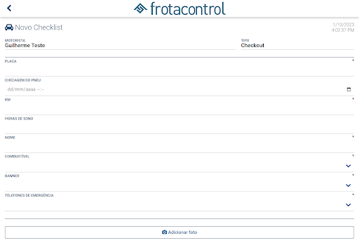 O Aplicativo Frotacontrol é utilizado pelos motoristas para envio de checklists de conferência do status do veículo antes e depois de sua utilização. Os usuários são criados e gerenciados pelo sistema de gestão do Frotacontrol pelo próprio gestor da frota. Saiba mais em www.frotacontrol.com.br