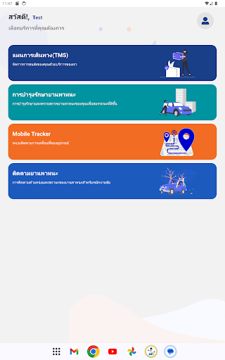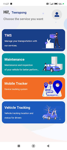เป็นเมนูที่ใช้ในการระบุตำแหน่งของพนักงานขับจากอุปกรณ์มือถือ แทนการติดตั้งอุปกรณ์ GPS ซึ่งแอปนี้จะมีการนำข้อมูลตำแหน่ง GPS ส่งไปเก็บไว้ในระบบตามช่วงเวลาที่มีการเปิดการติดตามไว้ และสามารถปิดการส่งข้อมูลได้ แล้วจะสามารถนำมาใช้งานร่วมกันในเมนูต่าง ๆ เช่น เมนูแผนการเดินทาง (TMS), เมนูติดตามยานพาหนะ รวมถึงการดูสรุปข้อมูลหรือรายงานในรูปแบบต่างๆ ผ่าน Web Console ได้ โดยในเมนู Mobile Tracker จะมีการร้องขอสิทธิการใช้งานบางอย่างของอุปกรณ์เพิ่มเติม ดังนี้