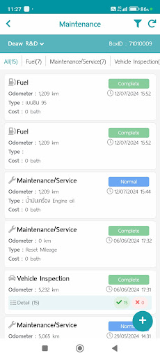 เป็นเมนูสำหรับบันทึกรายการบำรุงรักษาของยานพาหนะ เพื่อเก็บข้อมูล และสามารถสรุปรายงานผ่านทาง Web Console ได้ โดยแยกเป็นประเภทต่างๆ ดังนี้