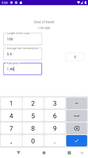 The application consists of a simple interface in which the user enters data on the amount of fuel, the route traveled and the fuel price. Based on this data, the application calculates the average fuel consumption and the average fuel cost per 100 km. This feature is especially useful for people who want to optimize their expenses.