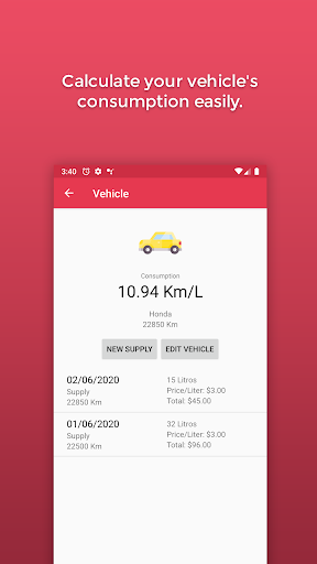 Register your vehicles and supplies to obtain approximate fuel consumption, have a simplified history of expenses and other information about supplies, configure the display by kilometers, miles, nautical miles, liters and gallons.
