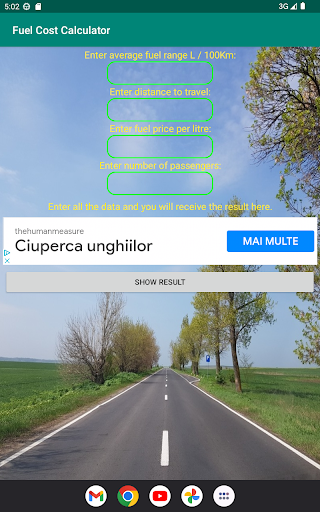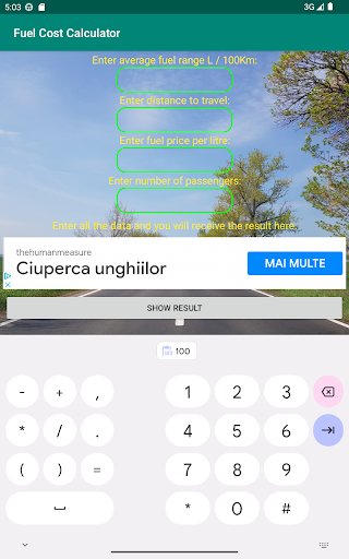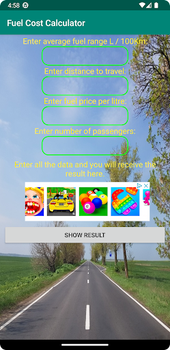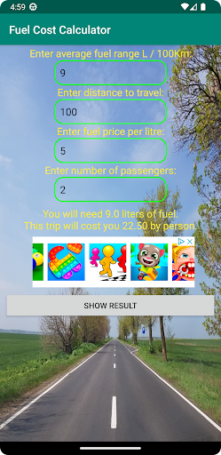With this application you can calculate how many liters of fuel you will consume, what is the total cost of fuel and how much each passenger has to pay.