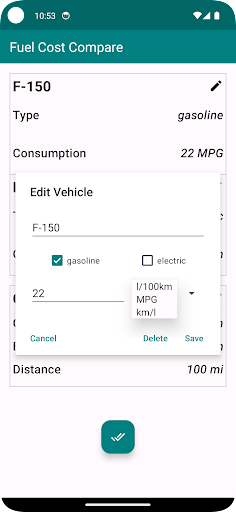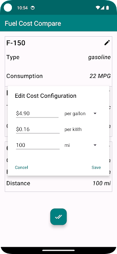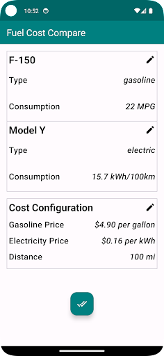 All entered values are saved, ensuring that each time you reopen the app, your vehicle details and cost inputs are readily available.