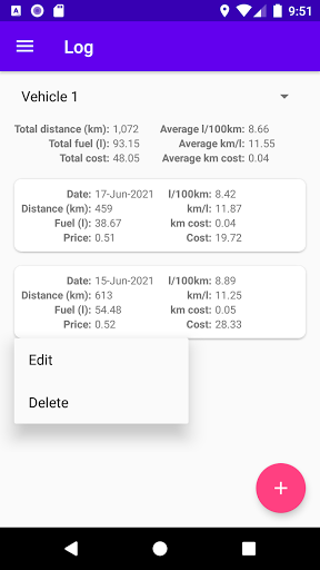 Track real world fuel consumption and costs with this application by storing each fill-up. This application will give you important information for car management such as: