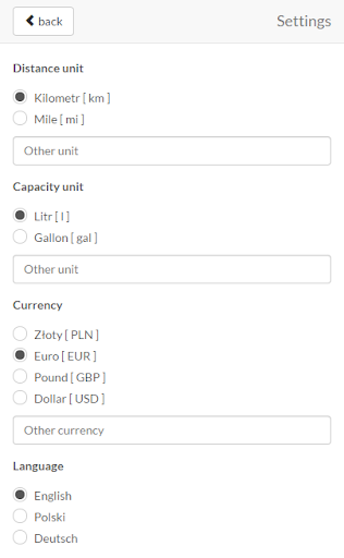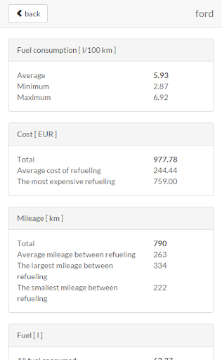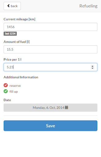 – synchronization – you can save your refueling log on server, and download it on any device whenever you want.