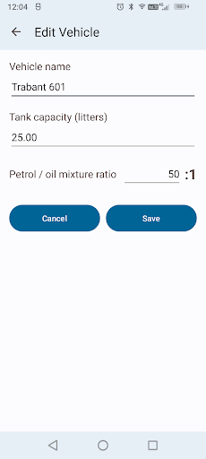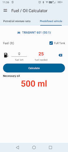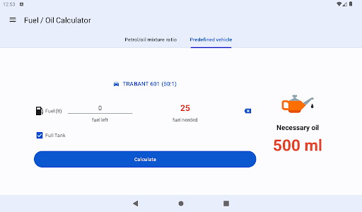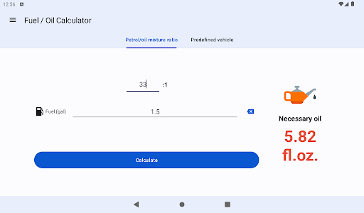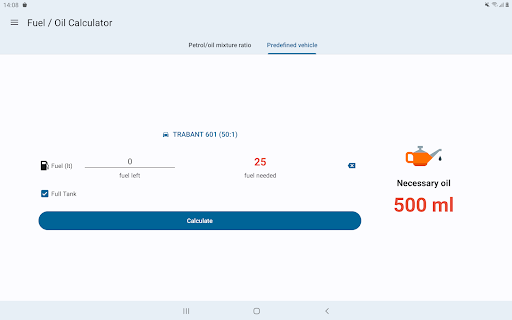 Small app designed for calculating the amount of oil required for fueling a