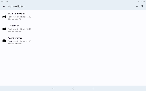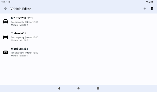 – ‘Vehicle Editor’ which let’s you manage all yours 2-cycle gasoline equipment.
