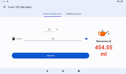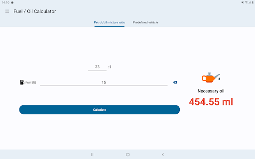 the quantity of fuel. Click the calculate button and you will know the exact amount of oil for the mix.
