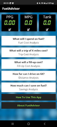 Especially if you depend on driving to make a living – as with a ride-sharing service, food delivery service, or a good old-fashioned taxi – FuelAdvisor can help you spend less on gas by doing the math for you.