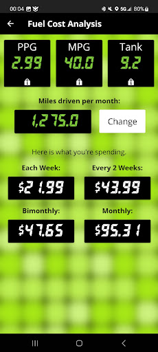 ● How much you’re likely to spend on gas for time frames ranging from a week to a month