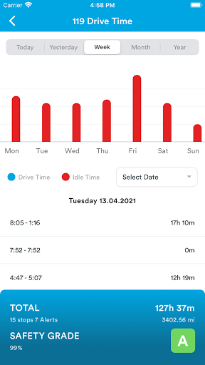 In the palm of your hand, you have deep insights for each vehicle’s performance, drivers’ activity, maintenance reports, and you can even, investigate incidents in the field whether you’re in the office or at the airport!