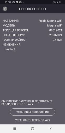 Вы можете обновлять базу данных, установить новое програмное обеспечение или настроить устройство. Приложение для обновления радар-детектора Fujida Magna WiFi.