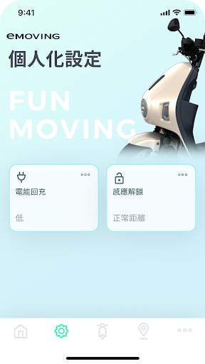 eMOVING FUN心騎APP2.0大更新,以清新色調搭配圖像化的操作設定,使用上更上手、直覺,車輛與APP的搭配更便利。