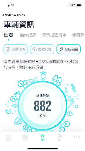 也能透過車輛資訊功能了解車輛實況,包含減少碳排量計算,讓愛護地球的您對於環保的貢獻一目了然。