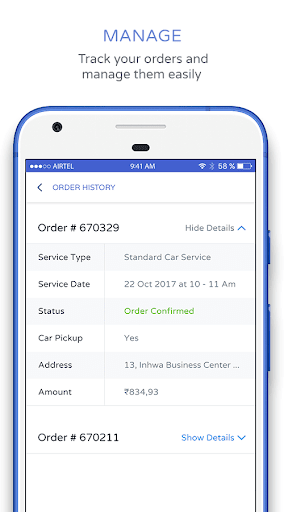 Service Tracking: Now track the progress of your car service right in the app only. Also get the importent updates about your car’s service through push notification and SMS.